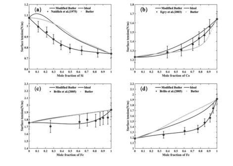 基于Butler模型對表相的偏摩爾過剩吉布斯自由能進行修正以生成二元合金體系的表面張力模型;